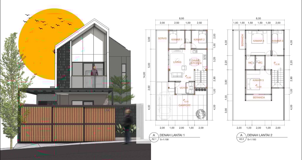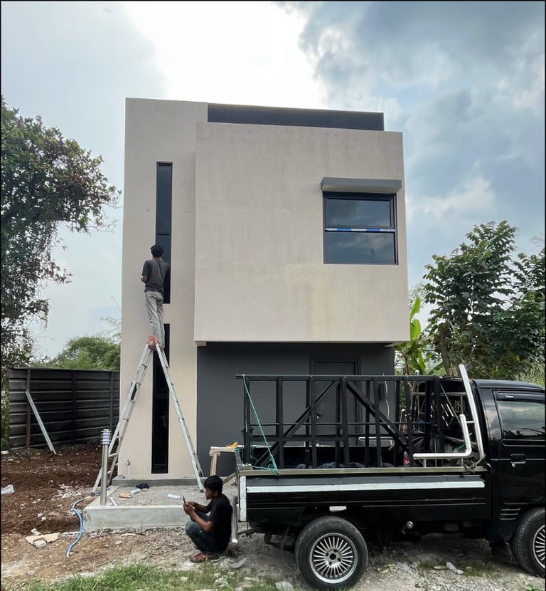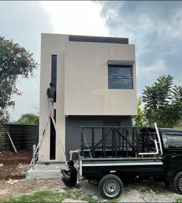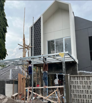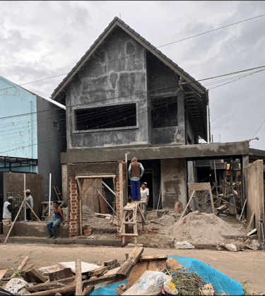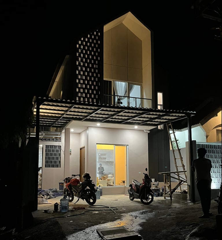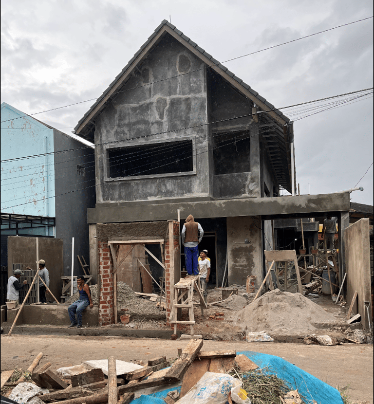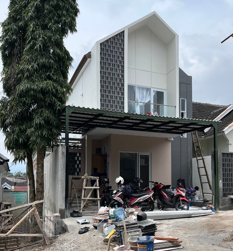 Untuk mengatasi masalah ini, kami memperkuat struktur bangunan dengan menambah pondasi serta kolom dan balok. juga kami menerapkan desain minimalis tropis dengan aksen terracota pada fasad agar menambah suasana yang lebih sejuk dan nyaman.