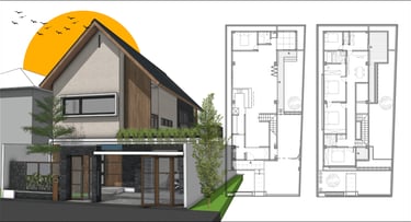 Rumah ini dimiliki oleh pasangan suami istri yang menginginkan hunian bergaya Jepang modern. Keduanya pernah tinggal di Jepang dan ingin menghadirkan tata letak ruang yang efisien seperti apartemen di sana. Dengan keterbatasan lahan—luas tanah hanya 50 m² dan lebar muka 4,8 meter—perancangan menjadi tantangan tersendiri. Kebutuhan ruang tetap harus terpenuhi, yakni 3 kamar tidur dan 2 kamar mandi, dengan salah satunya dilengkapi bathtub, serta anggaran pembangunan di bawah Rp300 juta.